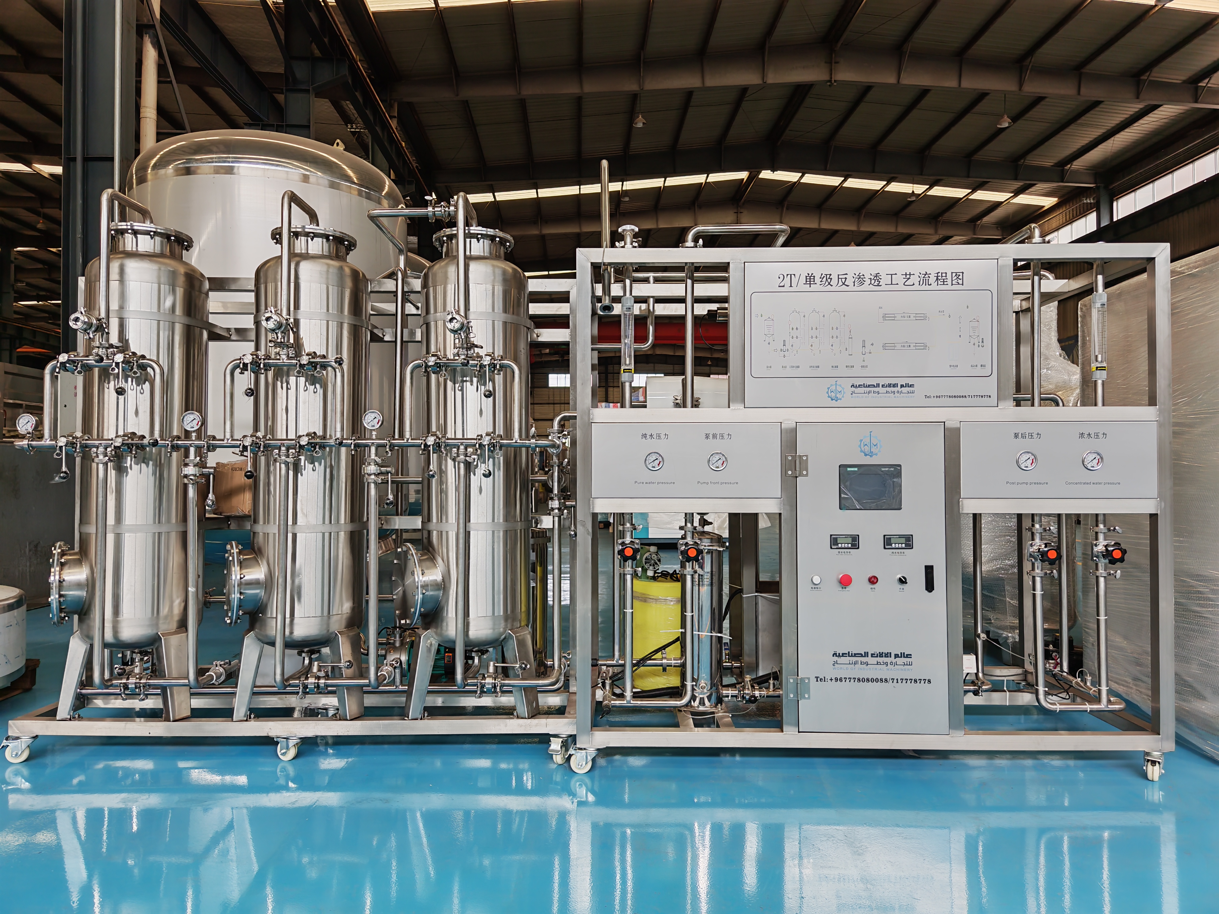 反滲透系統(tǒng)主要設(shè)備有石英砂過(guò)濾器,活性炭過(guò)濾器,鈉離子交換器,RO(反滲透),紫外線消毒器,精密過(guò)濾器,臭氧發(fā)生器,水箱等。處理能力為0.5-50噸/小時(shí)。它可以有效地去除泥濘的有機(jī)物,鐵,錳和氧化物,過(guò)濾懸浮物,膠體,微生物殘留的氧和水中的一些重金屬離子,降低水的硬度,使各種規(guī)格的水質(zhì)完全符合國(guó)家淡水標(biāo)準(zhǔn)的淡水。